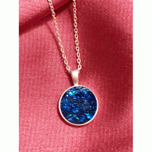 Our Cremation ashes round necklace gently holds the cremation ashes of your lost loved one within a specially created resin finish, encased in a sterling silver pendant. Carry their memory close to you always.