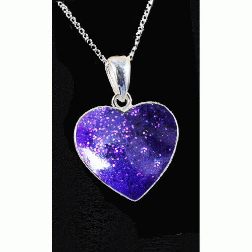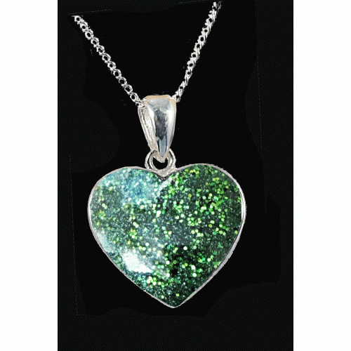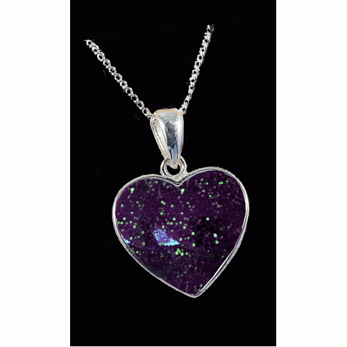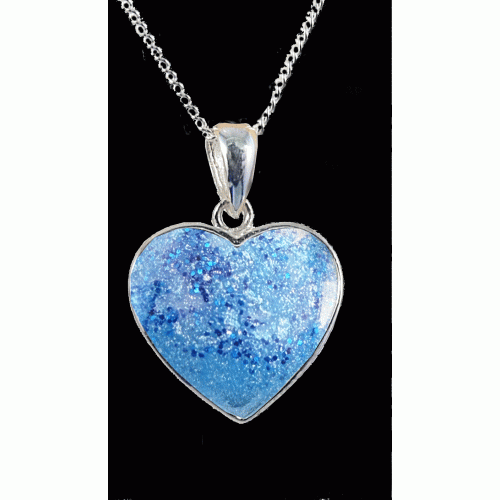 Our Cremation ashes heart resin necklace gently holds the cremation ashes of your lost loved one within a specially created resin finish, encased in a sterling silver pendant. Carry their memory close to you always.