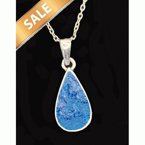 Our Cremation ashes Teardrop resin necklace gently holds the cremation ashes of your lost loved one within a specially created resin finish, encased in a sterling silver pendant. Carry their memory close to you always.